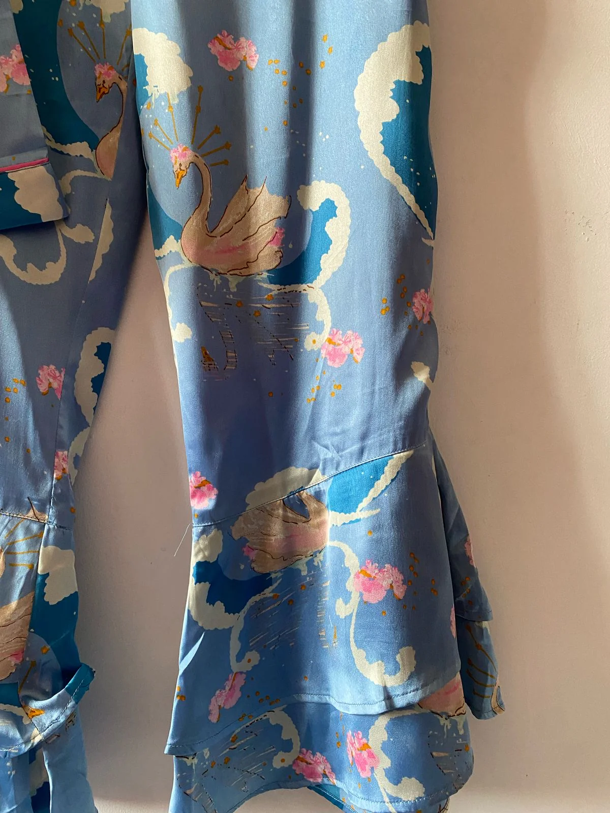 This stylish two-piece set features a flowy, open-front robe paired with coordinated bottoms – perfect for layering or wearing as a statement outfit. Whether you're lounging, stepping out, or styling it up for a casual outing, this set gives you a relaxed yet fashionable vibe.